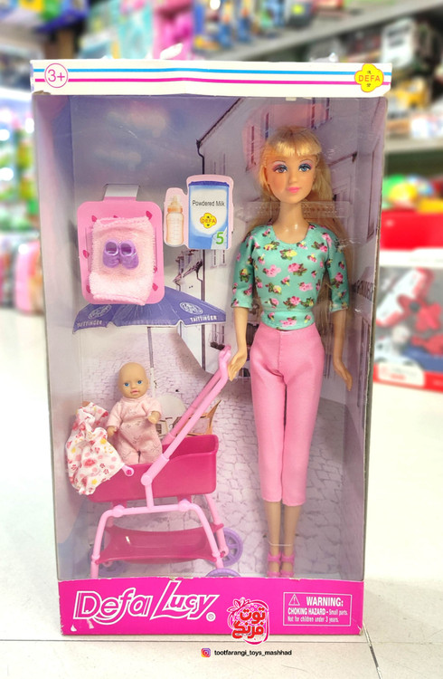 محتویات جعبه: باربی ، بچه ، کالسکه ، حوله ، کفش بچه