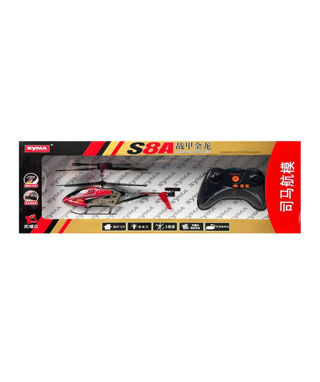 هلیکوپتر Syma S8A با ابعاد ۲۷۵.۶۱۲.۶ سانتیمتر از یک سیستم حفاظت دوگانه و ژیروسکوپ بسیار قوی برخوردار است که به ارتقاء پایداری در پرواز این هلیکوپتر کنترلی کمک میکند. سیستم حفاظتی موجود در این مدل آن را بهترین انتخاب برای کنترل اسباب بازی در محیطهای بسته و فضای خانگی تبدیل کرده است.