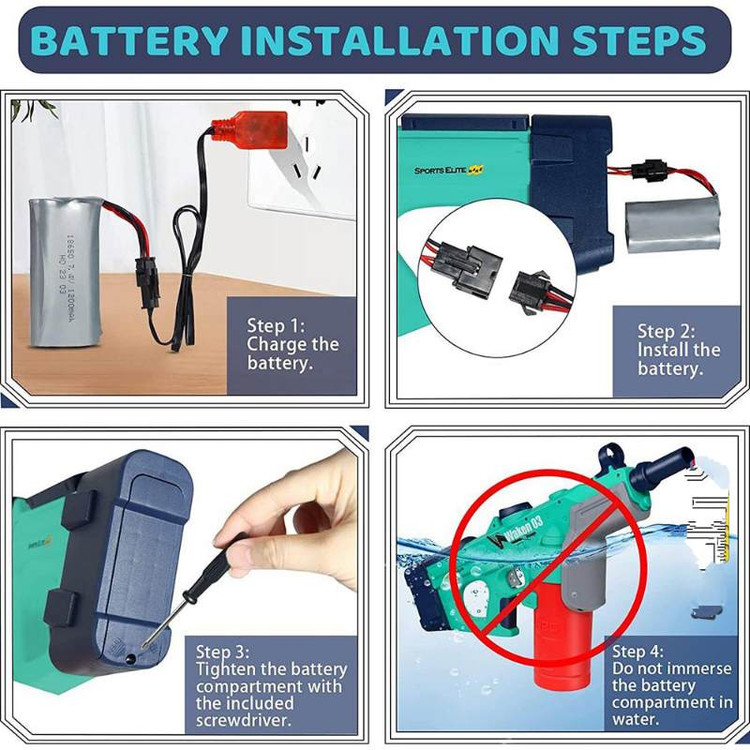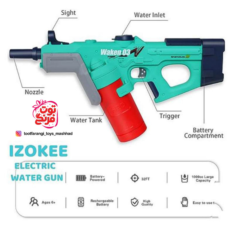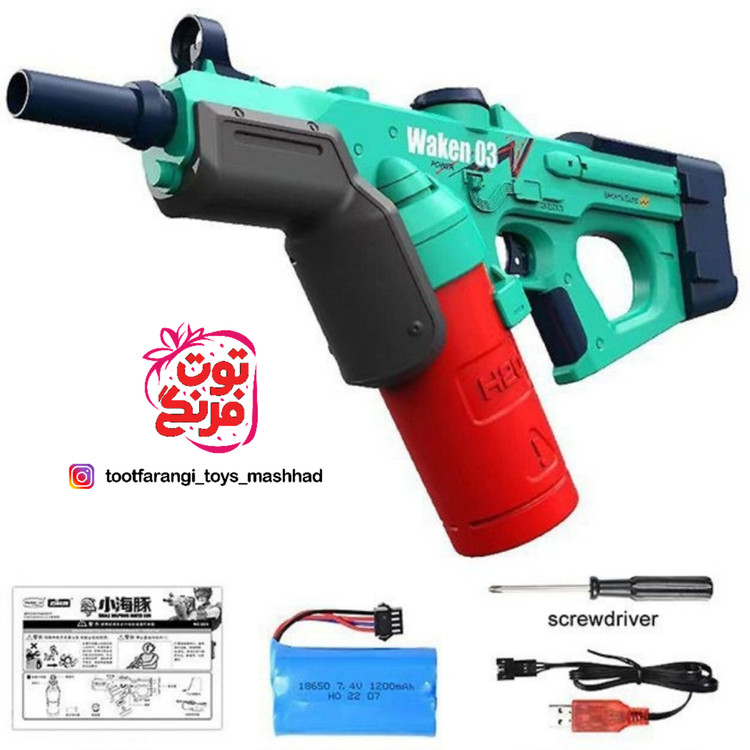 نوع اسلحه شارژی با باتری ۷/۴ ولت بسیار پرقدرت با توان پرتاب آب زیاد