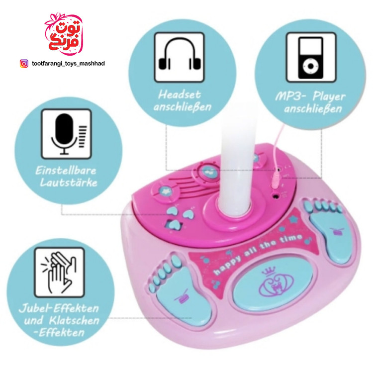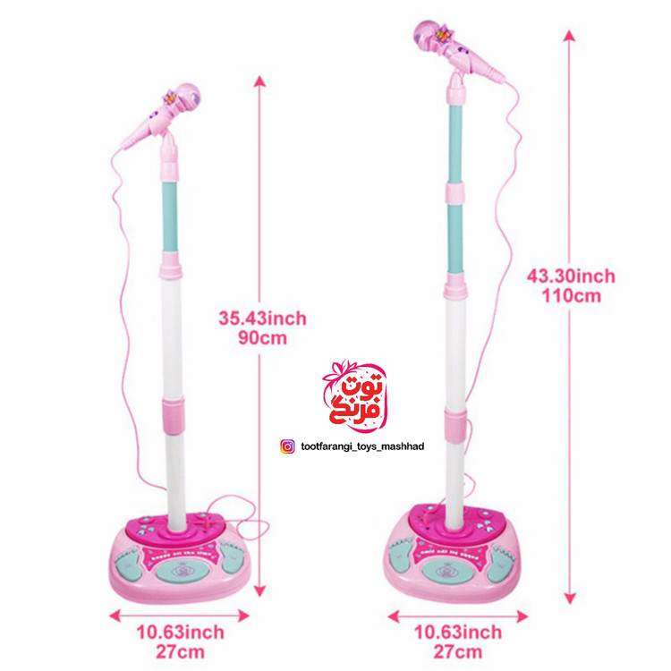 میکروفون اسباب بازی پایه دار از جنس پلاستیک ABS بی ضرر ساخته شده است