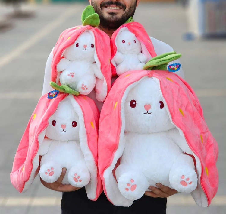 خرگوش های سوپرایزی بی شک جذابترین های عروسک های ترند شده این روزها هستن که در ۲ مدل توت فرنگی و هویچ تولید شدن ، یک خرگوشخوشگل داخل یک هویچ یا توت فرنگی که فقط کافیه زیپشو باز کنید تا بیاد بیرون
