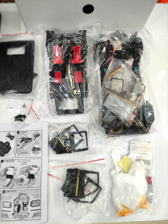 قسمت تحتانی بسته بندی شامل یک جعبه سفید دیگر می باشد که داخل این جعبه بسته بندی هایی شامل : پیچ و مهره های مخصوص ماکت ، درب های عقب و جلو ، درب موتور ، صندوق ، سقف ، سانروف ، محور و شاسی ها و سیم کشی های ماکت و غیره قرار گرفته است
