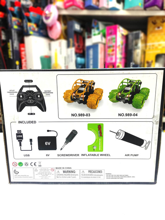 ماشین ، باتری قابل شارژ ، شارژر ، تلنبه (مخصوص جهت باد کردن لاستیک ها) ریموت کنترل ، شاخص اندازه گیری میزان باد لاستیک