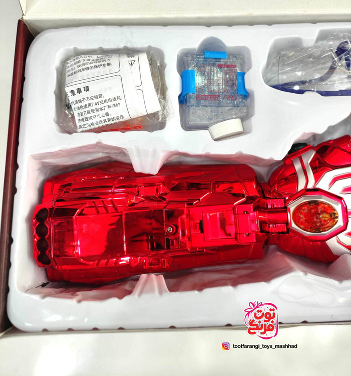 دستکش (اسلحه) ، عینک محافظ، محفظه تیر ژله ای ، تیر ژله ای یدک ، تیر فومی ، پیچ گوشتی مخصوص ، کابل شارژ ، باتری شارژی ، دفترچه راهنما