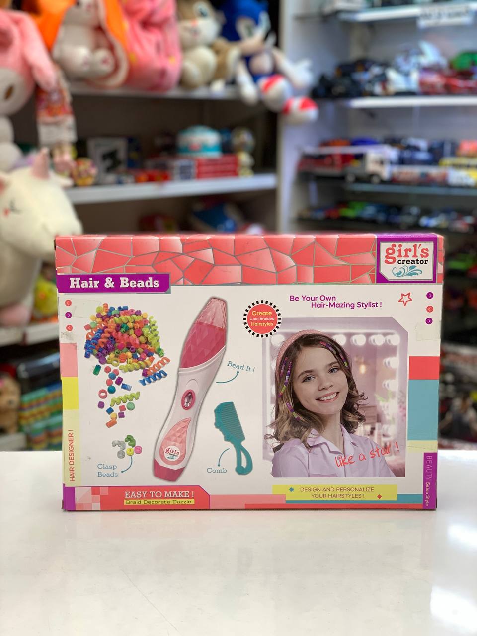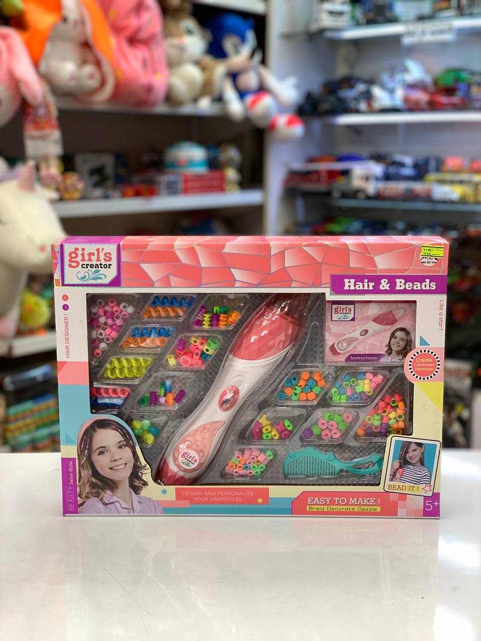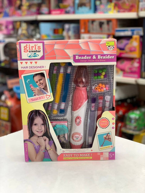مدل اول که دستگاه باطری خور داره ، کاموا داره و چندین مهره رنگی ، که این دستگاه کارش بافتن کامواها دور دسته مو از طریق چرخش می باشد و در نهایت مهره هارا می توان به ان اضافه کرد